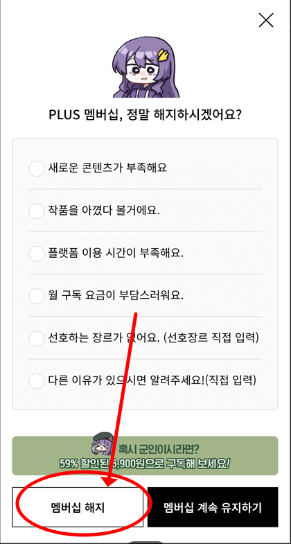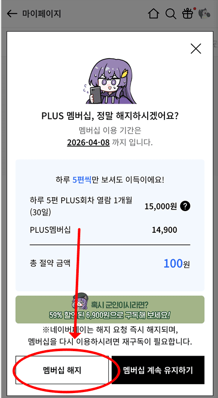 하지만 여러 소설들을 즐겁게 이용하다가 PLUS 멤버십을 해지하고 싶어지는 경우가 있다. 예를 들어, 갑자기 구독료가 부담스러워졌거나, 더이상 재밌는 콘텐츠가 없거나 등 여러이유가 있을 것이다.
