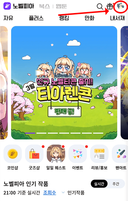 모바일이 아닌 컴퓨터로 노벨피아 웹사이트에 접속하여 해지하는 방법이다. 모바일 앱에서 하는 것보다 컴퓨터로 해지하는 것이 더 쉽다.