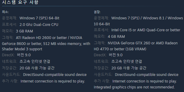 - 한글 지원이 없어 영어로 플레이 해야 함