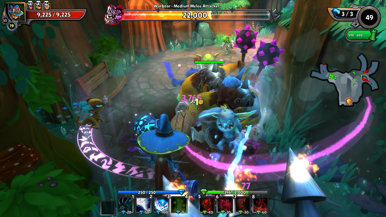 보통은 타워가 부족한 곳에 가서 영웅으로 몬스터를 때려잡게 됩니다. 타워못지않게 영웅이 강력한 디펜스 게임이라 어느정도 스킬 배분과 컨트롤이 필요합니다.