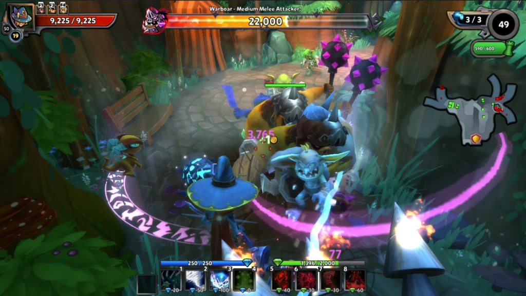 보통은 타워가 부족한 곳에 가서 영웅으로 몬스터를 때려잡게 됩니다. 타워못지않게 영웅이 강력한 디펜스 게임이라 어느정도 스킬 배분과 컨트롤이 필요합니다.
